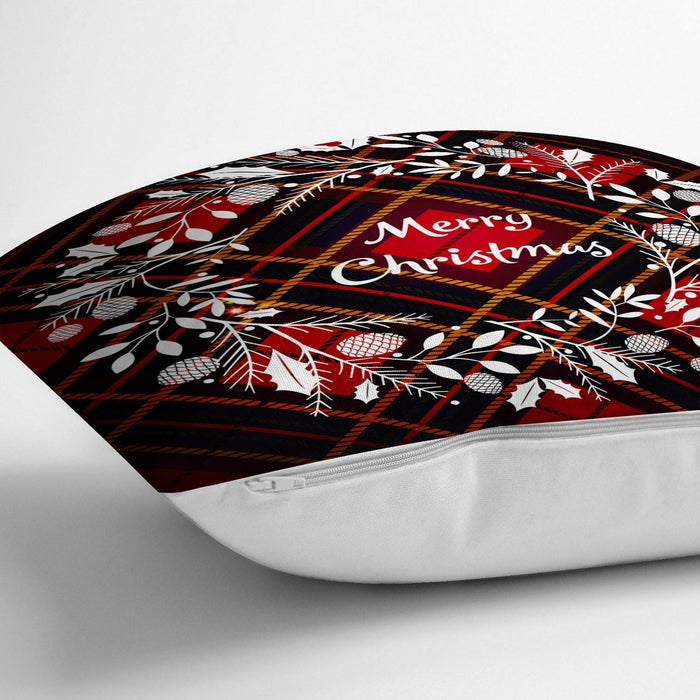 Ekose Merry Christmas Yılbaşı Desenli Dijital Baskılı Yastık Kırlent Kılıfı 43x43cm