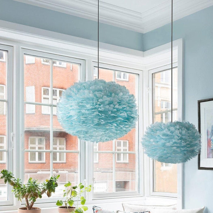 EOS Kaz Tüyü Avize Açık Mavi 45cm Lambader