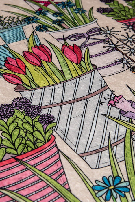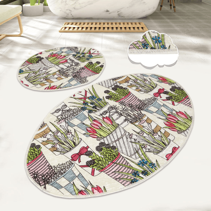 Flowerpot Dijital Baskılı 2li Set Banyo Paspas ve Halısı, Kaymaz Taban, Yıkanabilir