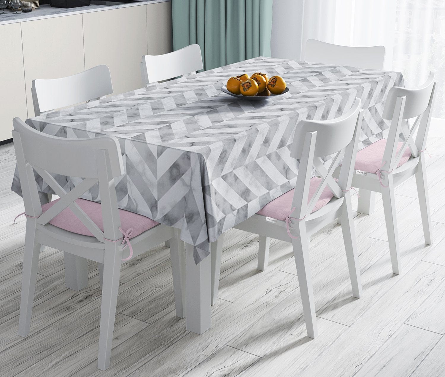 Geometrik Desenli Mermer Zeminli Modern Leke Tutmaz Masa Örtüsü