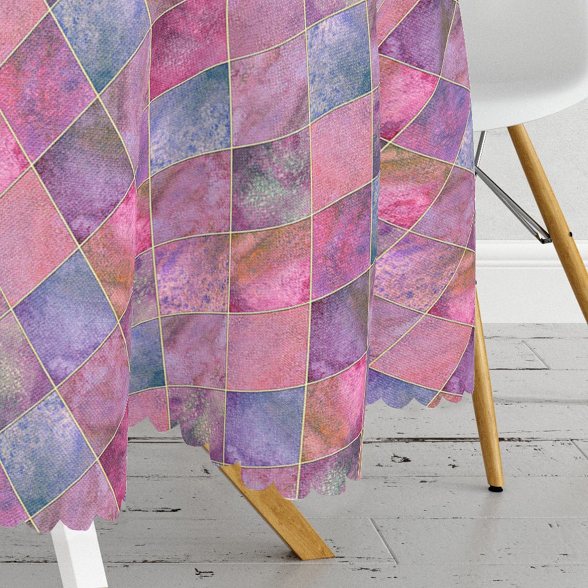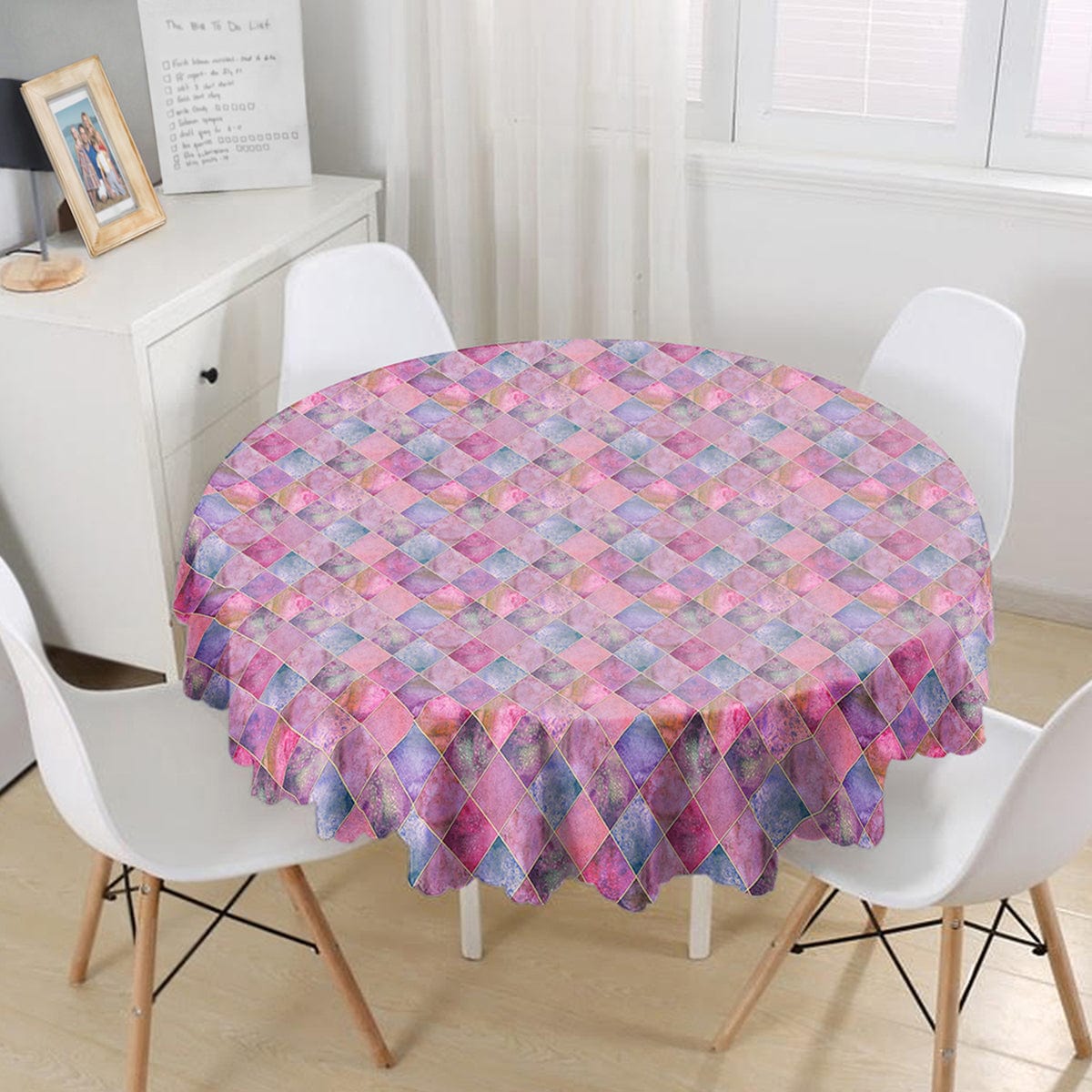 Geometrik Pudra Renkler Modern Tasarımlı Dekoratif Leke Tutmaz Yuvarlak Masa Örtüsü