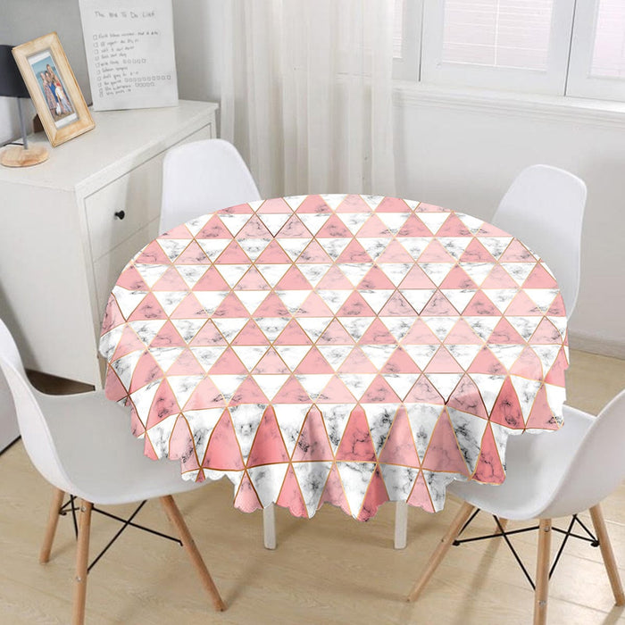 Geometrik Üçgen Şekilli Mermer Desenli Leke Tutmaz Yuvarlak Masa Örtüsü
