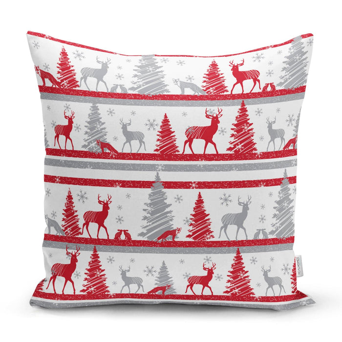 Geyik ve Çam Ağaçları Baskılı Dekoratif Yastık Kırlent Kılıfı 43x43cm