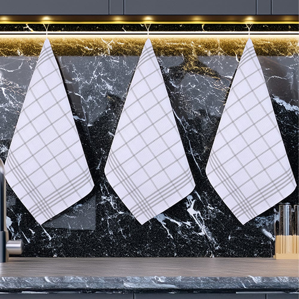 Gri 3lü Kareli Set Kurulama Bezi Pamuklu Mutfak Havlusu Çok Amaçlı Örtü 50x70cm