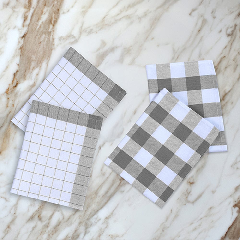Gri 4lü Kareli Set Kurulama Bezi Pamuklu Mutfak Havlusu Çok Amaçlı Örtü 45x70cm