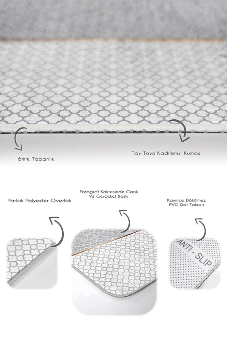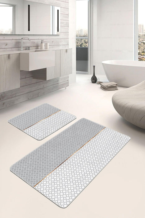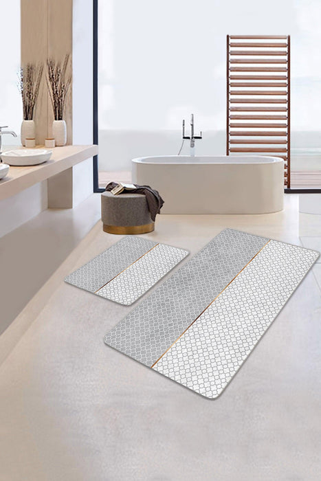 Gri Beyaz Ogea Özel Tasarımlı 2li Halı Takımı Kaymaz Taban Yıkanabilir