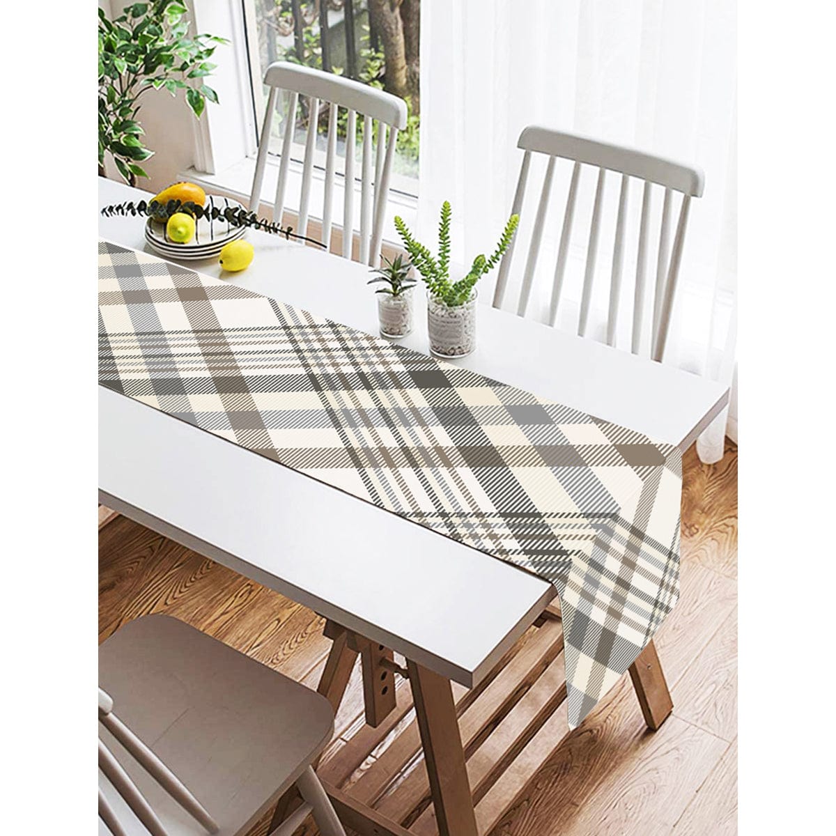 Gri Krem Ekose Desenli Dijital Baskılı Dekoratif Özel Tasarım Süet Runner