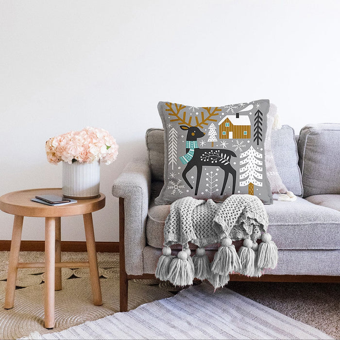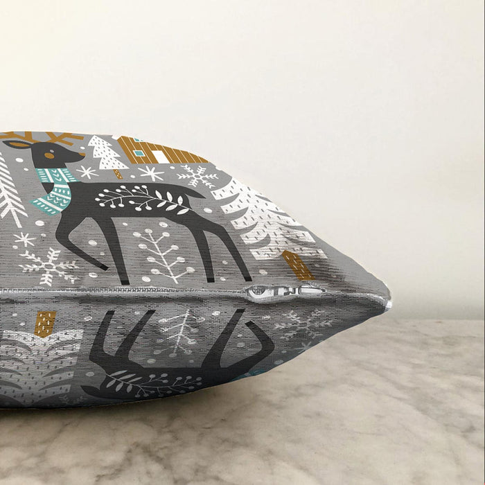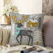 Gri Zeminde Geyik Desenli Dijital Baskılı Modern Raşel Kadife Yastık Kırlent Kılıfı