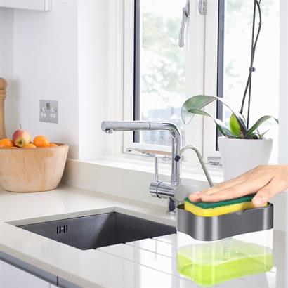 İkisi Bir Arada Basmalı Pratik Sıvı Sabunluk Pompası ve Bulaşık Yıkama Süngeri Haznesi