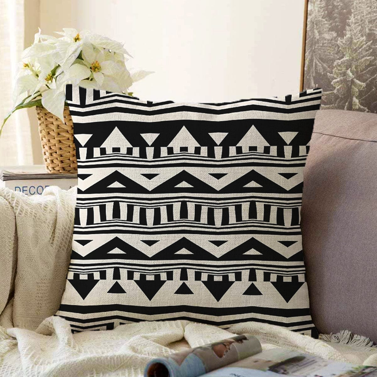İskandinav Desenli Etnik Tasarımlı Dijital Baskılı Modern Raşel Kadife Yastık Kırlent Kılıfı
