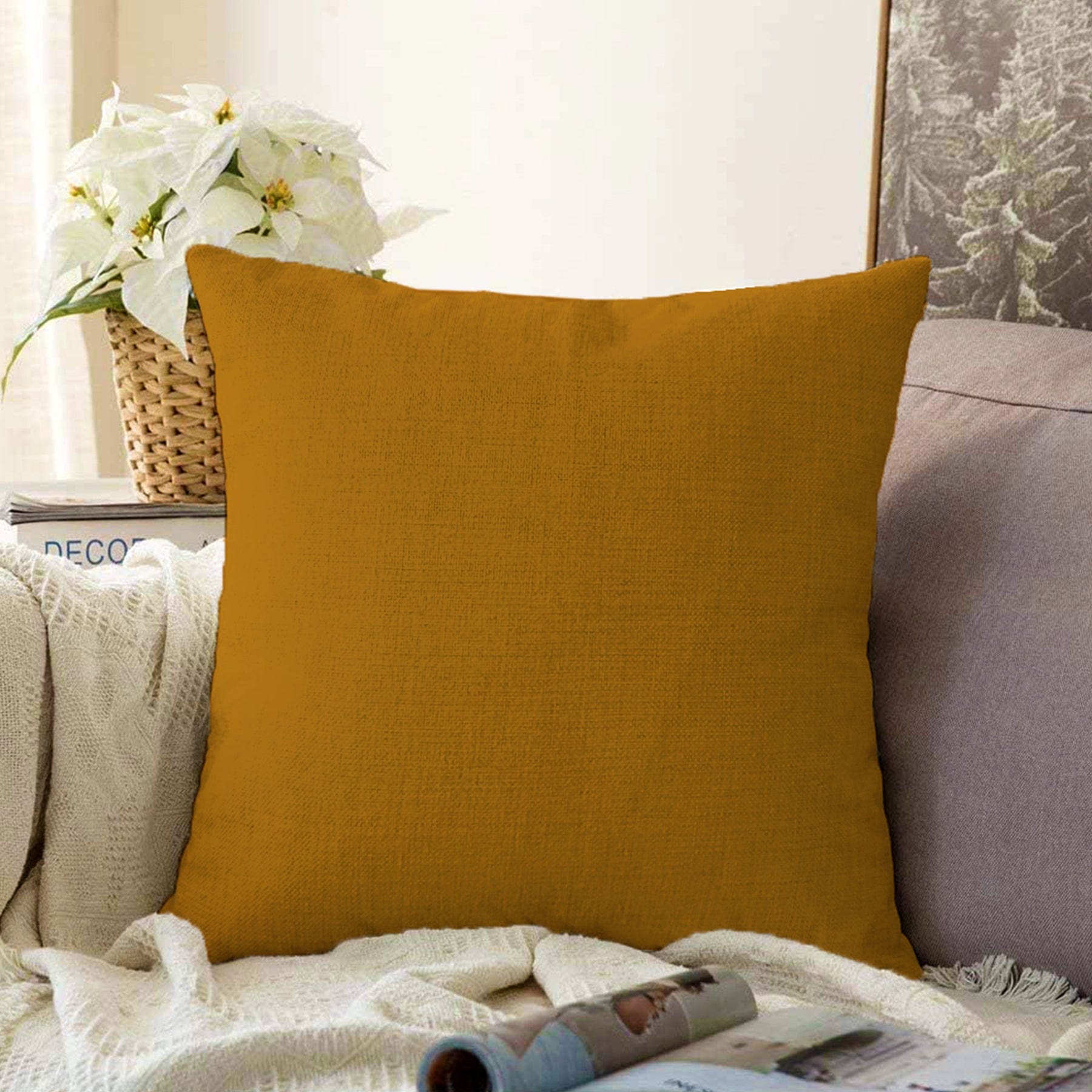 Kahverengi Düz Renkli Dijital Baskılı Raşel Kadife Yastık Kırlent Kılıfı