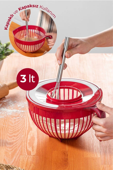 Kapaklı Mikser Kabı 3 Litre Kırmızı