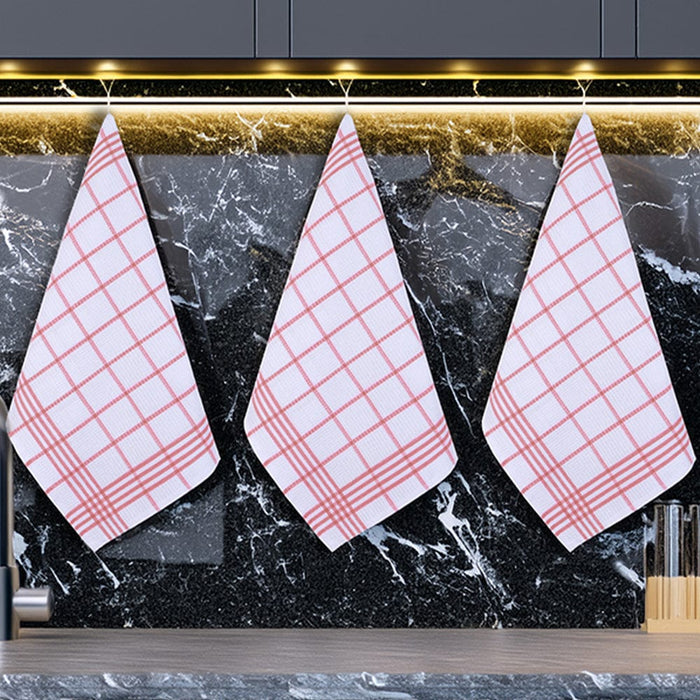 Kırmızı 3lü Kareli Set Kurulama Bezi Pamuklu Mutfak Havlusu Çok Amaçlı Örtü 50x70cm