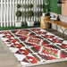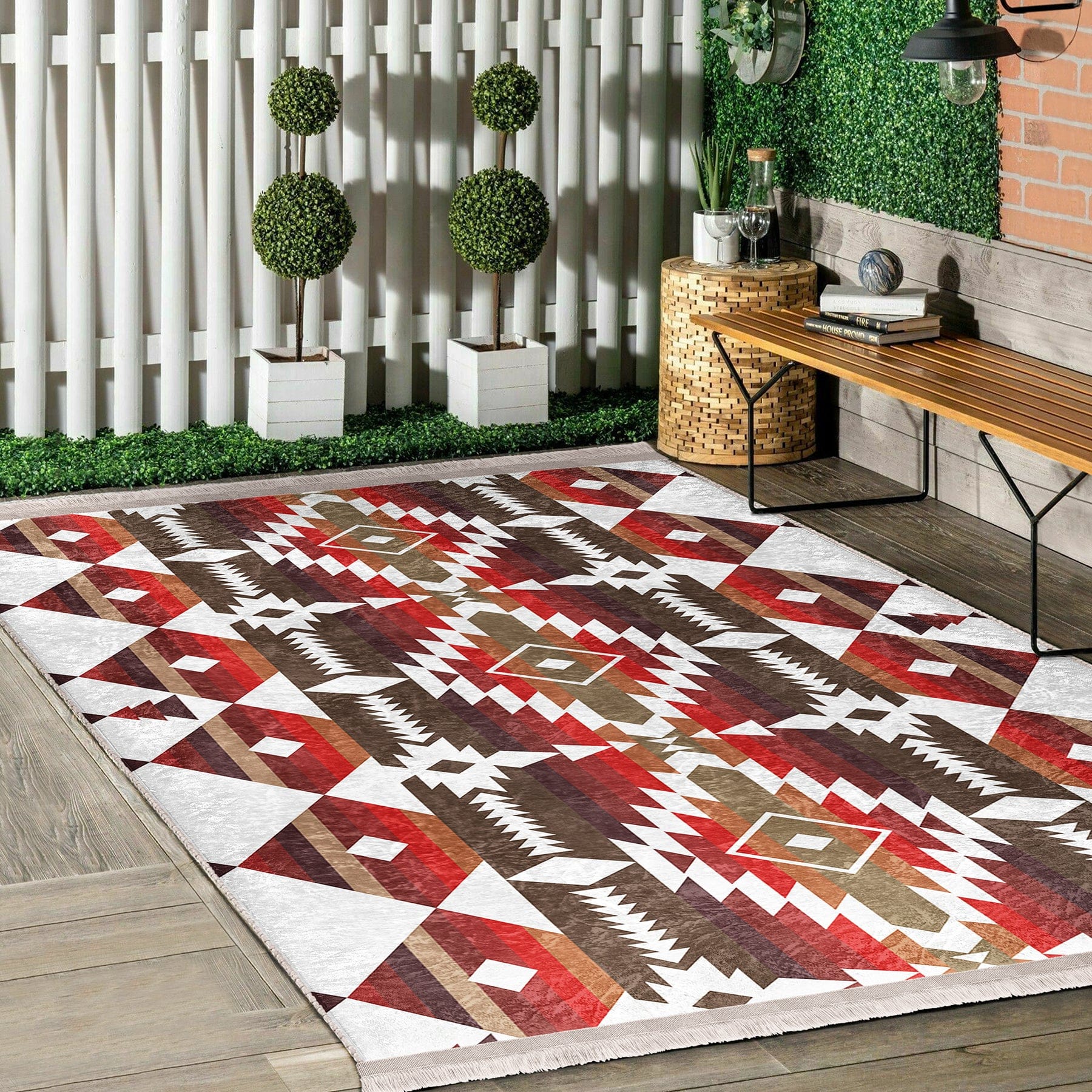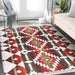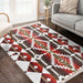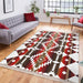 Kırmızı Geometrik Motifli Antik Desenli Etnik Geometrik Dijital Baskılı Makinede Yıkanabilir Saçaklı Halı