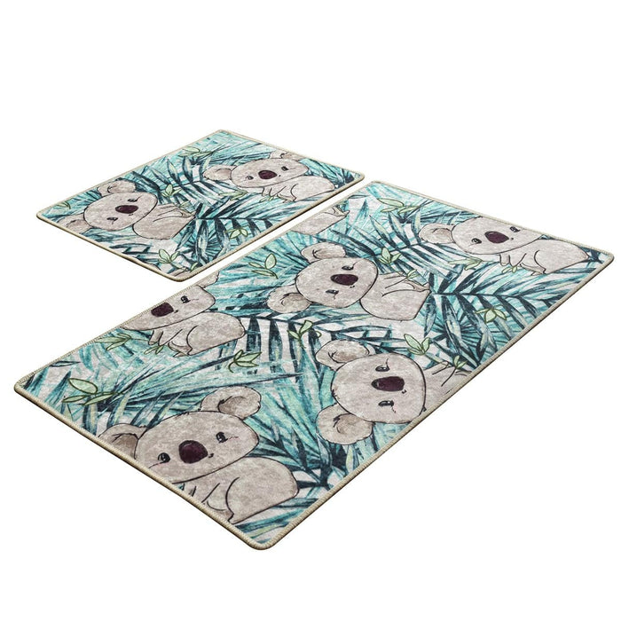 Koala Yeşil 2li Set Dijital Baskılı Banyo Paspas ve Halısı, Kaymaz Taban, Yıkanabilir