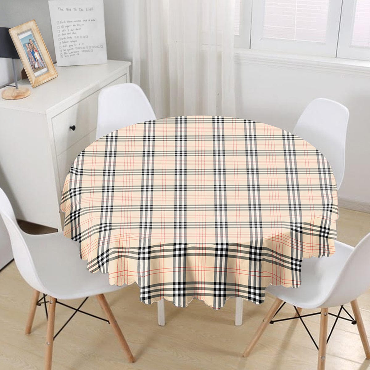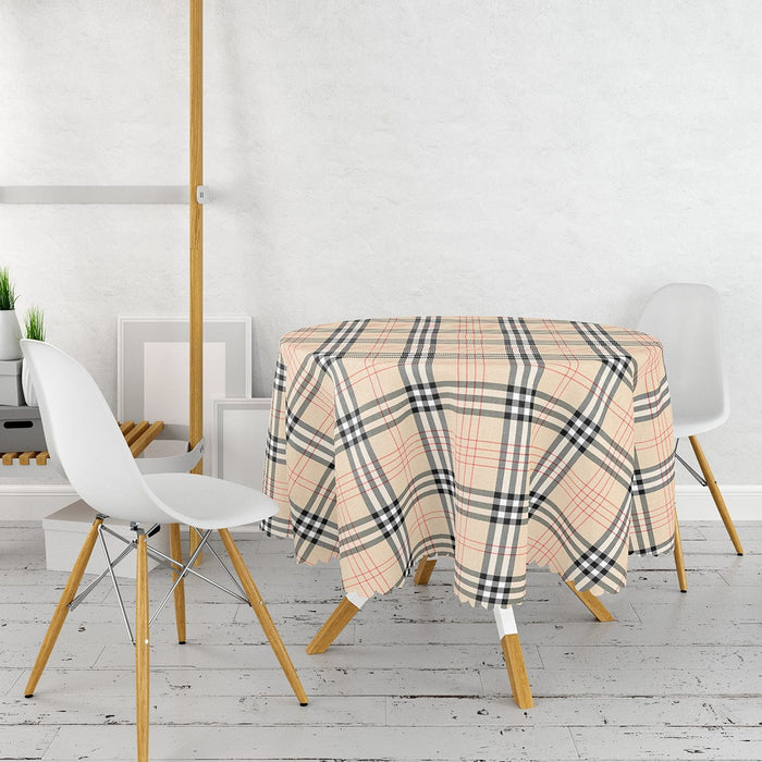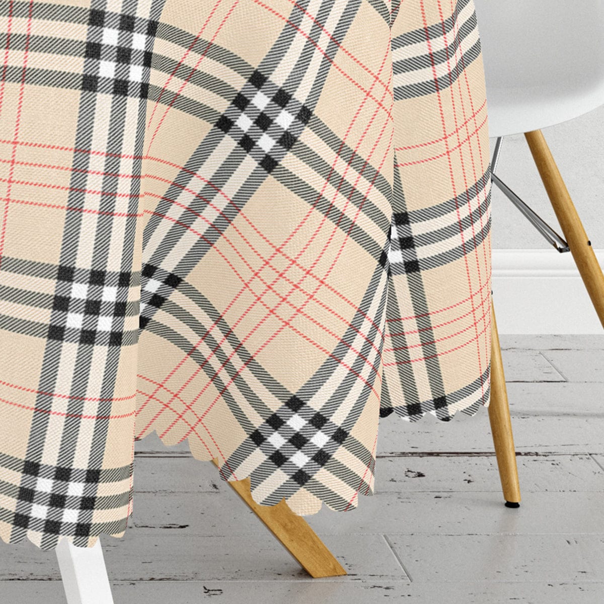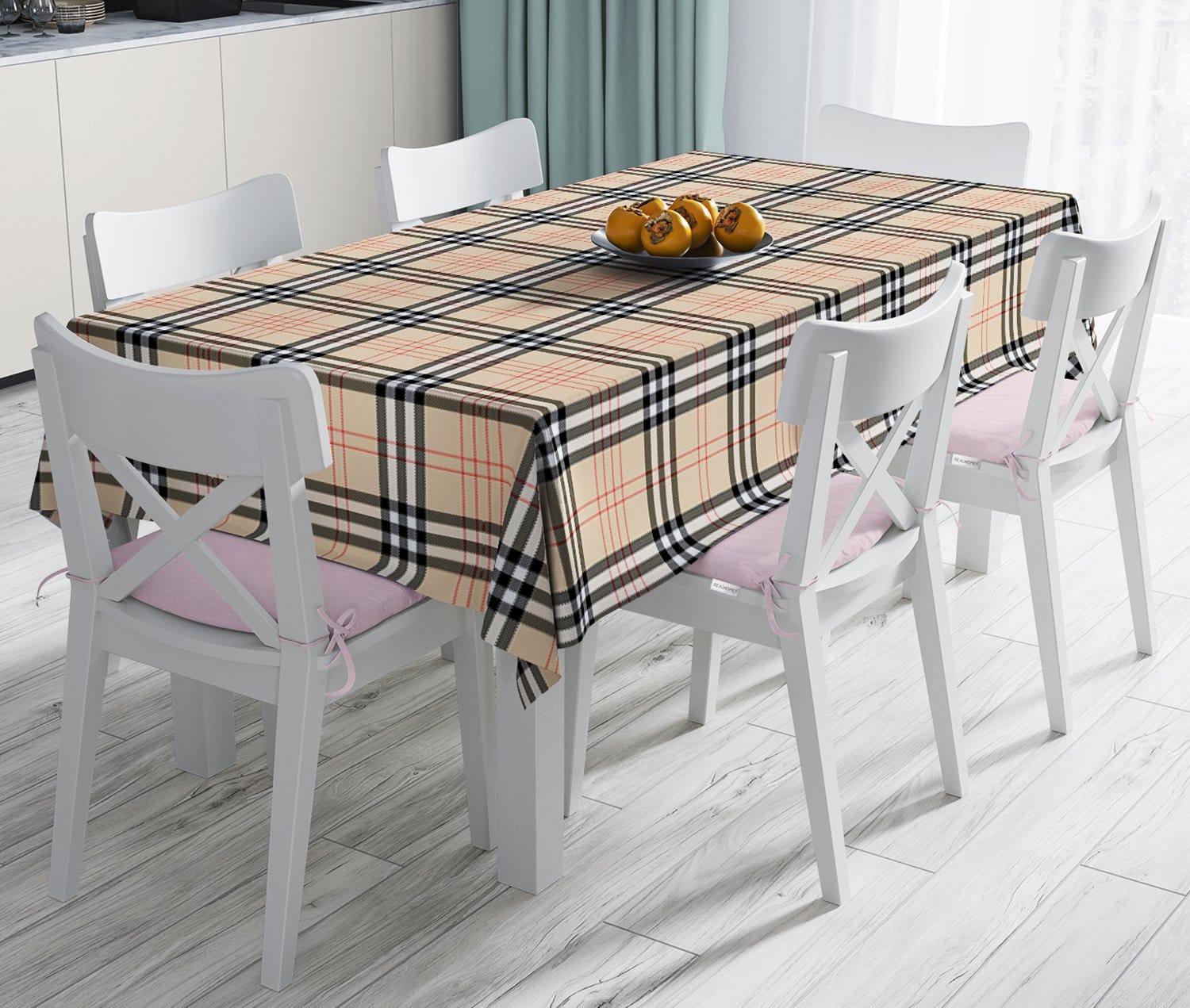 Krem Zeminli Ekose Desenli Dekoratif Leke Tutmaz Masa Örtüsü