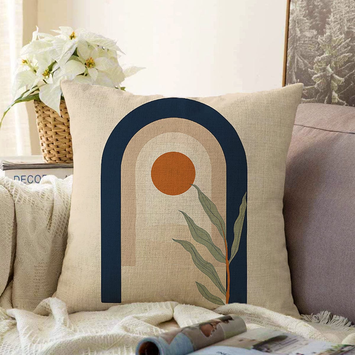 Krem Zeminli Minimal Çizimli Dijital Baskılı Modern Raşel Kadife Yastık Kırlent Kılıfı