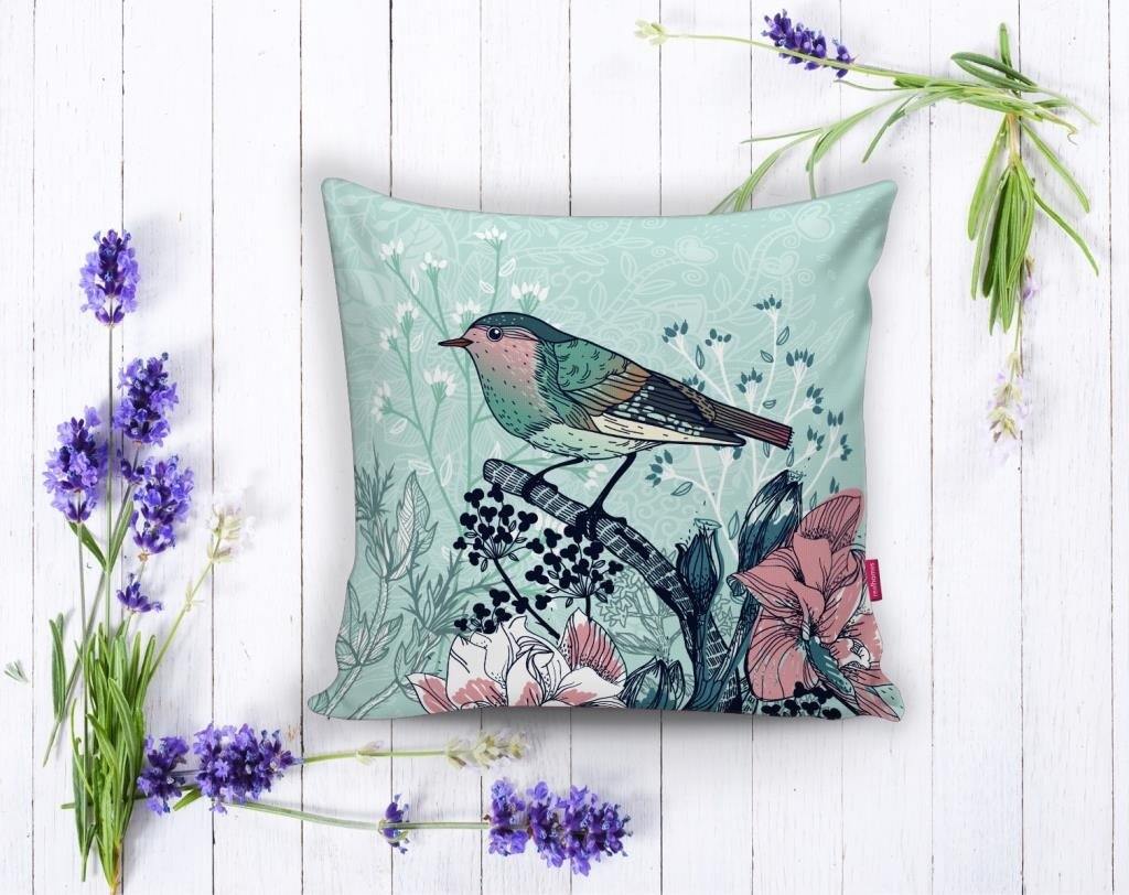 Kuş Motifli Dijital Baskılı Dekoratif Yastık Kırlent Kılıfı 43x43cm