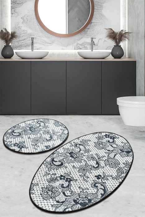 Lace 2li Set Dijital Baskılı Banyo Paspas ve Halısı, Kaymaz Taban, Yıkanabilir