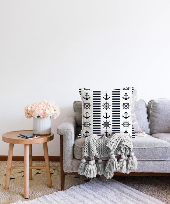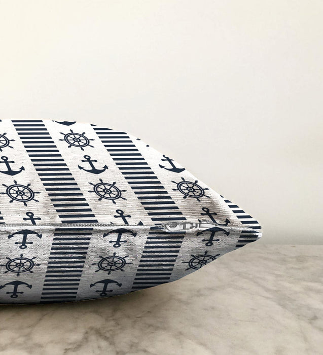 Lacivert Denizci Motifleri Dijital Baskılı Raşel Kadife Yastık Kırlent Kılıfı