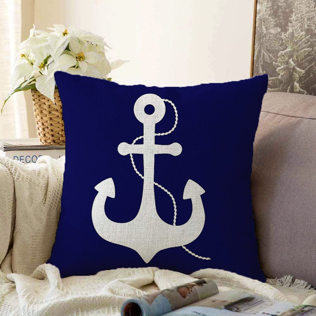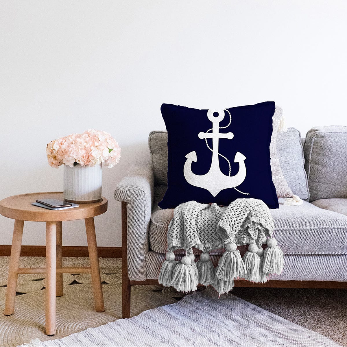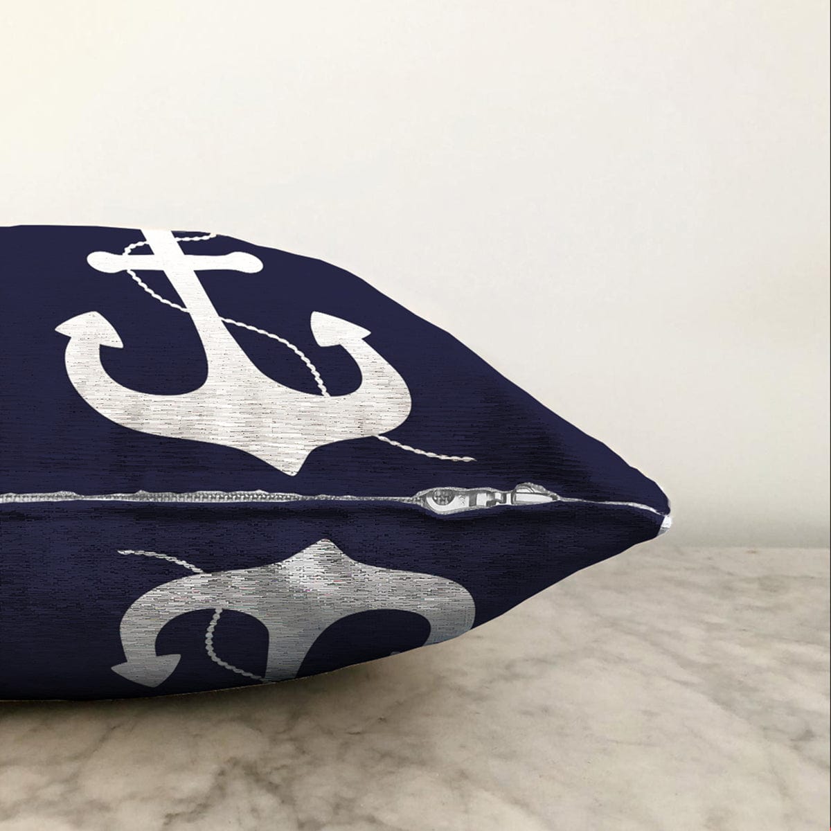 Lacivert Zeminli Çapa Desenli Dijital Baskılı Modern Raşel Kadife Yastık Kırlent Kılıfı
