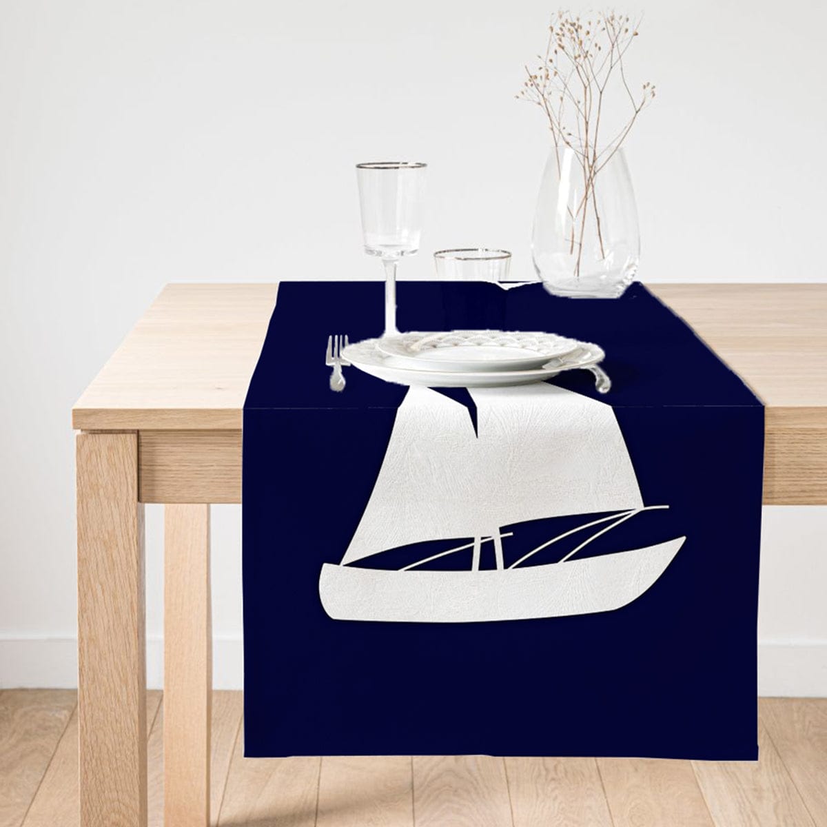 Lacivert Zeminli Yelken Desenli Dijital Baskılı Özel Tasarım Süet Runner