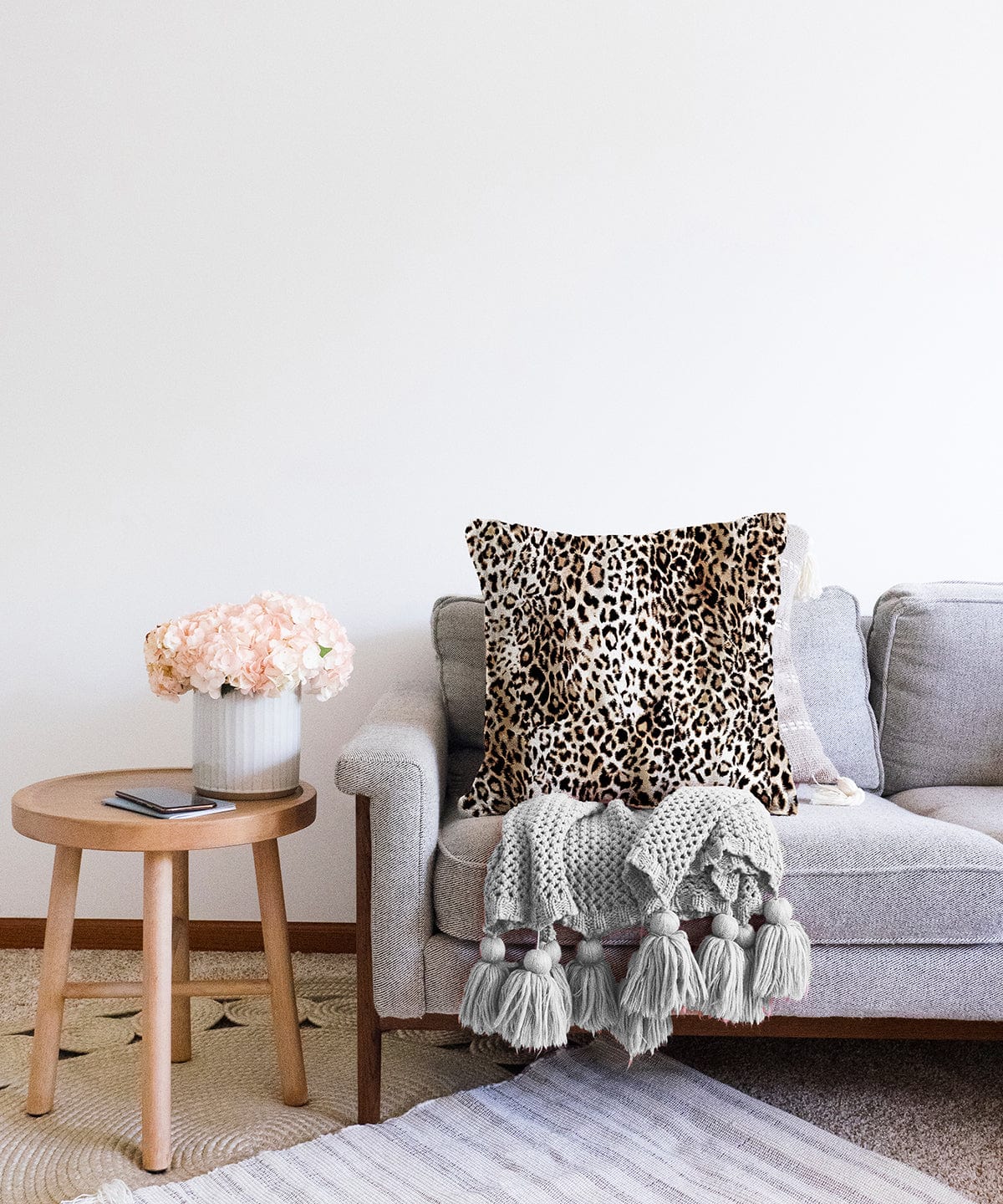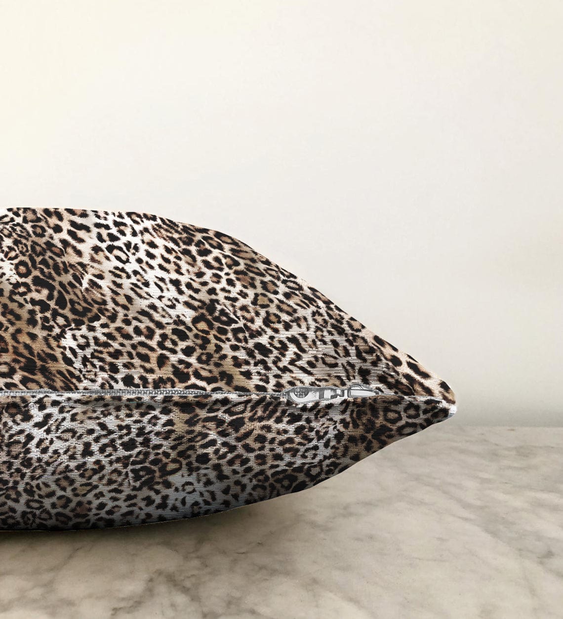 Leopar Motifli Dijital Baskılı Raşel Kadife Yastık Kırlent Kılıfı