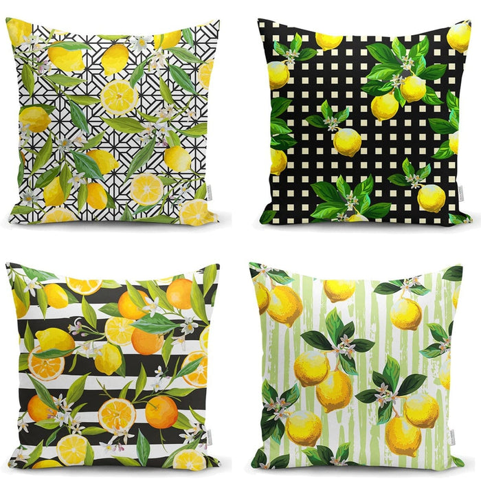 Limon Desenli Dekoratif 4lü Yastık Kırlent Kılıf Seti