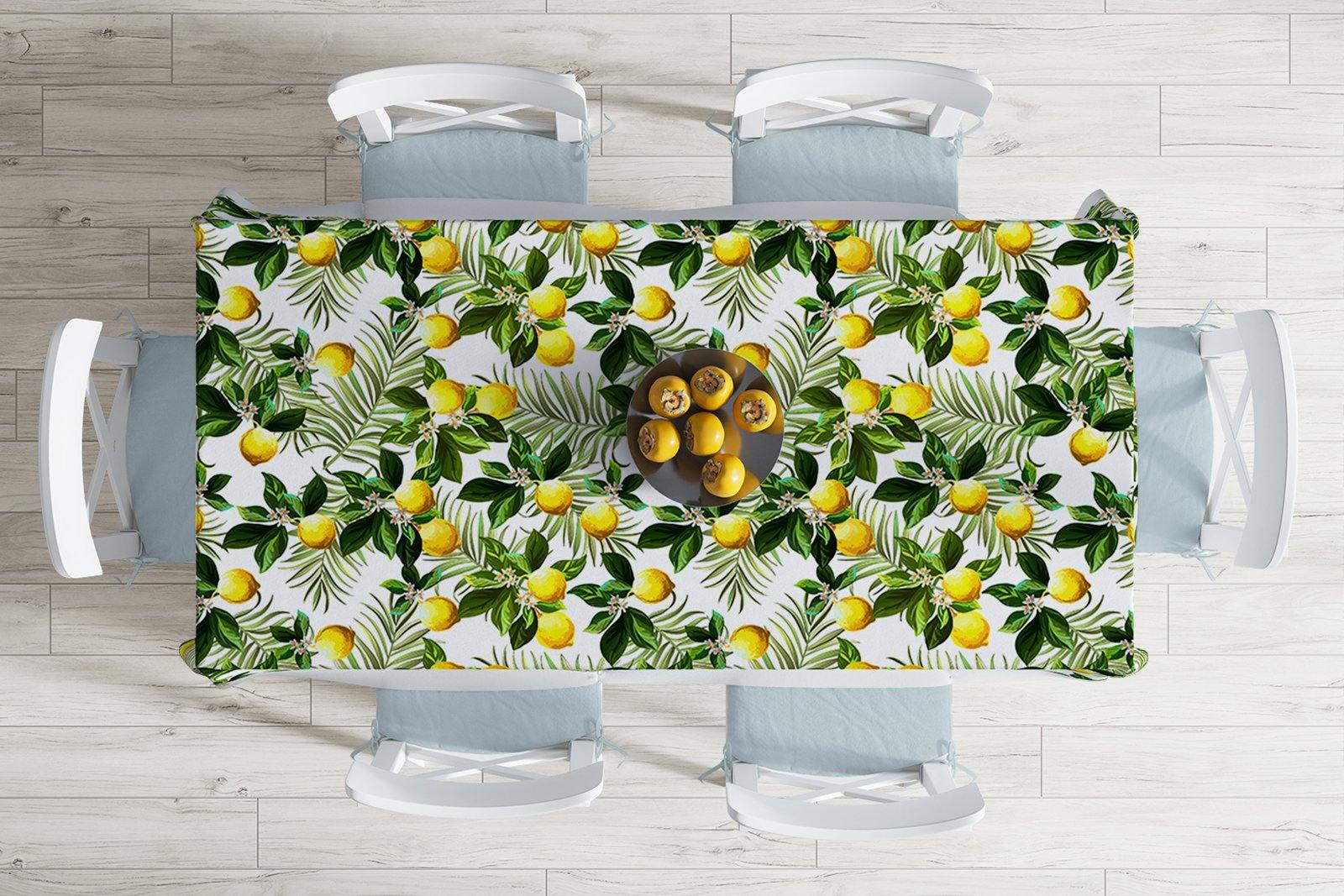 Limon Yaprakları Desenli Dijital Baskılı Leke Tutmaz Masa Örtüsü