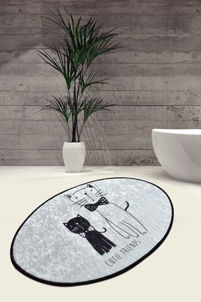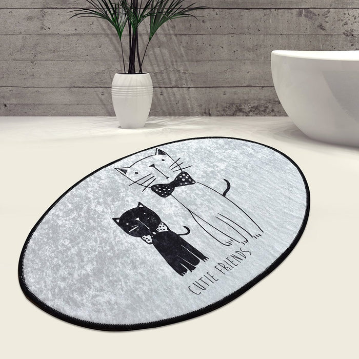 Little Cats Oval 60x90cm Dijital Baskılı Halı, Kaymaz Taban, Yıkanabilir
