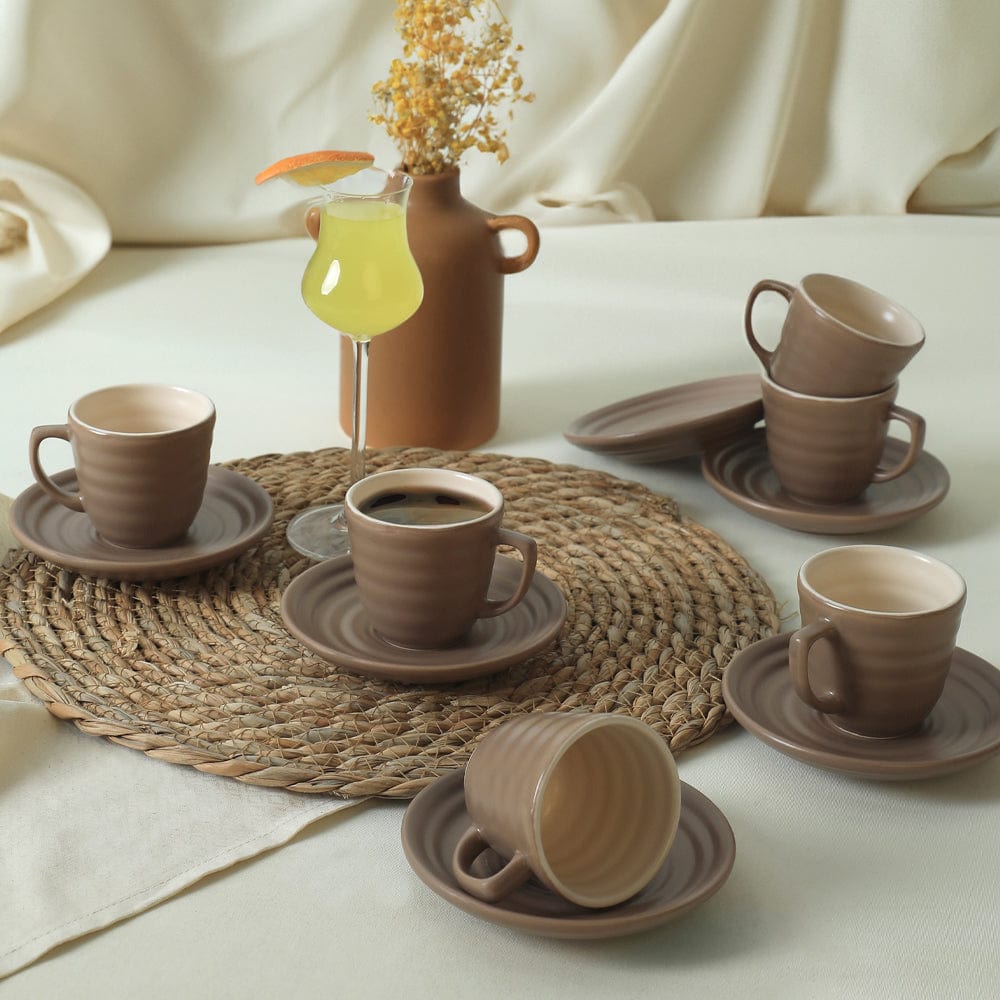 Mat Toprak Taupe / Krem Neva Kahve Takımı 12 Parça 6 Kişilik