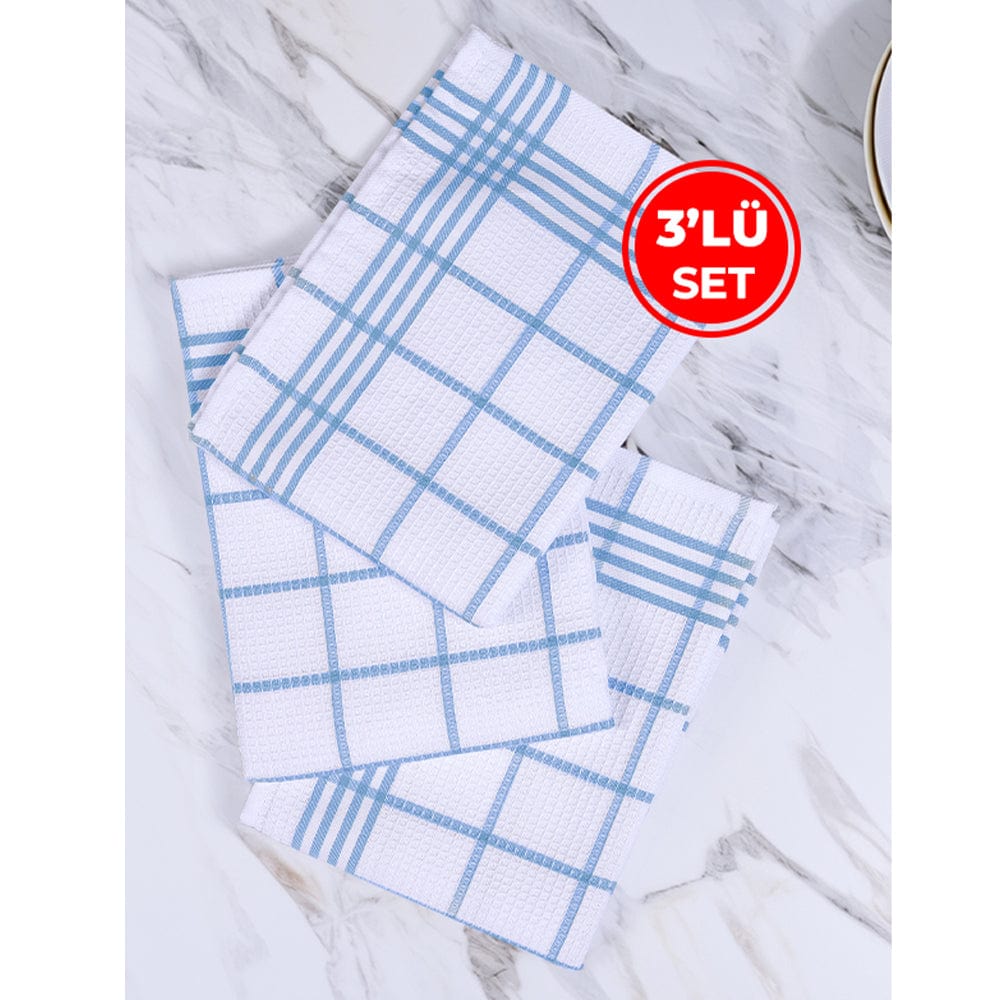 Mavi 3lü Kareli Set Kurulama Bezi Pamuklu Mutfak Havlusu Çok Amaçlı Örtü 50x70cm