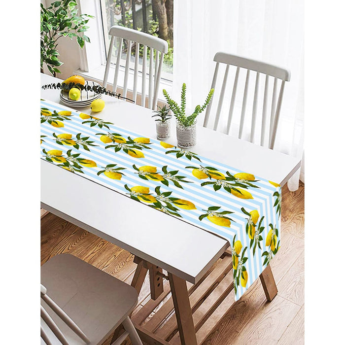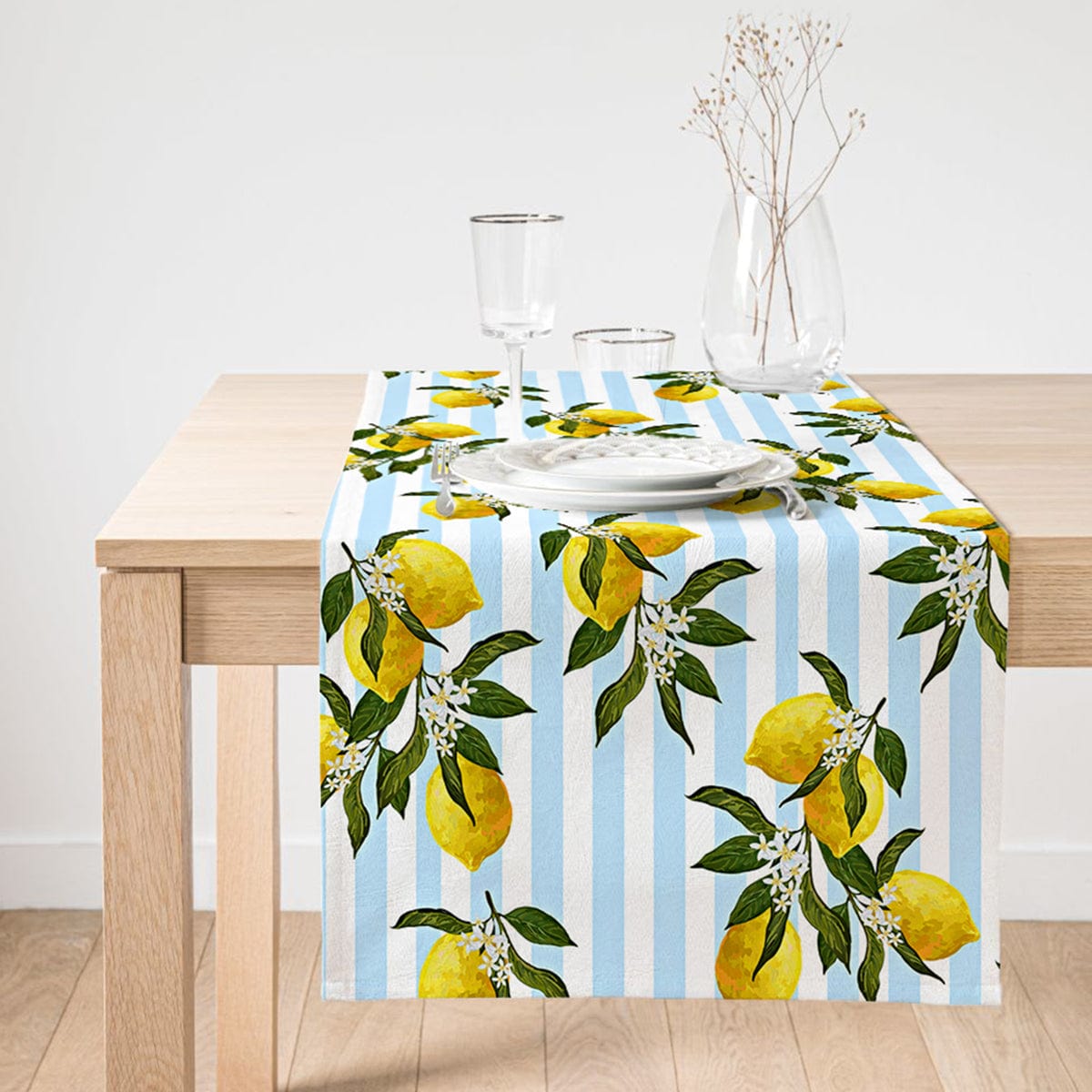 Mavi Çizgili Limon Desenli Dijital Baskılı Dekoratif Özel Tasarım Süet Runner