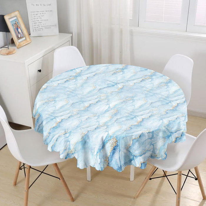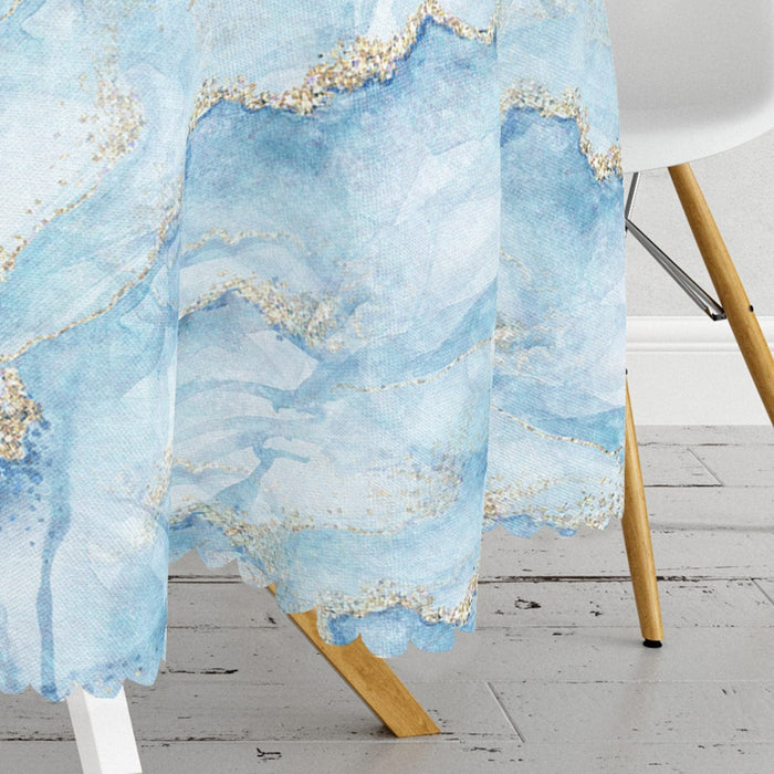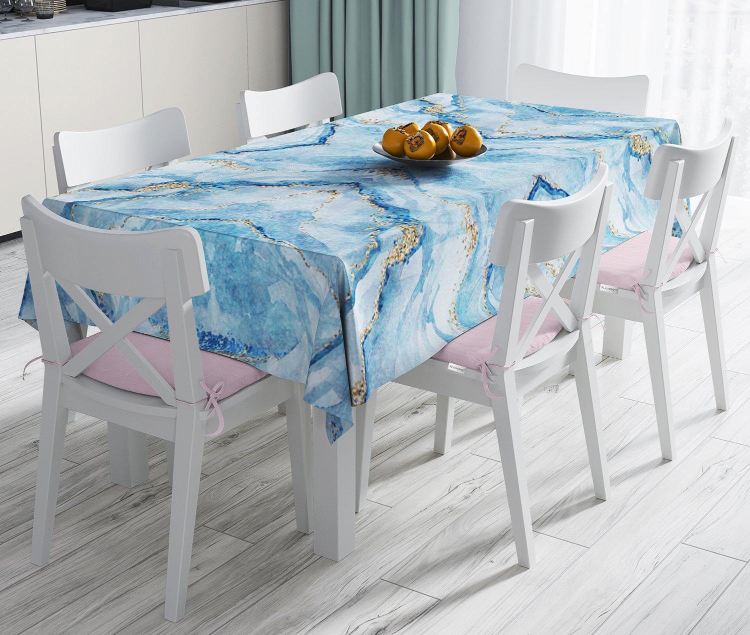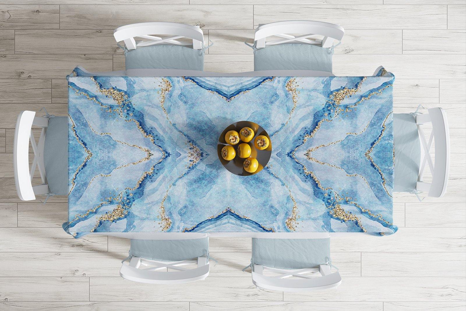 Mavi Renkli Mermer Desenli Dijital Baskılı Leke Tutmaz Masa Örtüsü