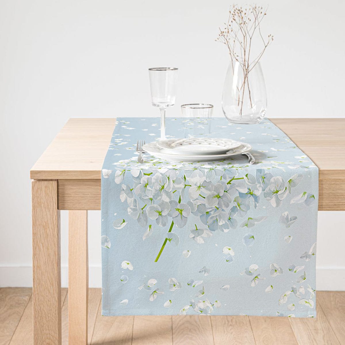 Mavi Zeminde Beyaz Ortanca Çiçeği Baskılı Süet Runner