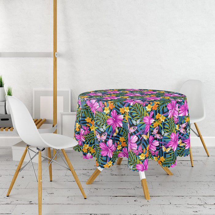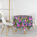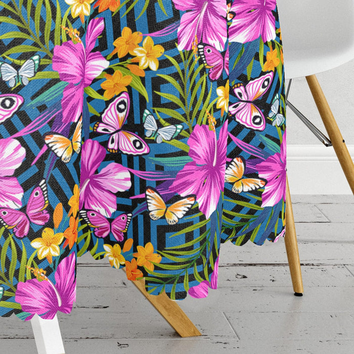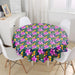 Mavi Zeminli Geometrik Çiçekler Modern Tasarımlı Leke Tutmaz Yuvarlak Masa Örtüsü