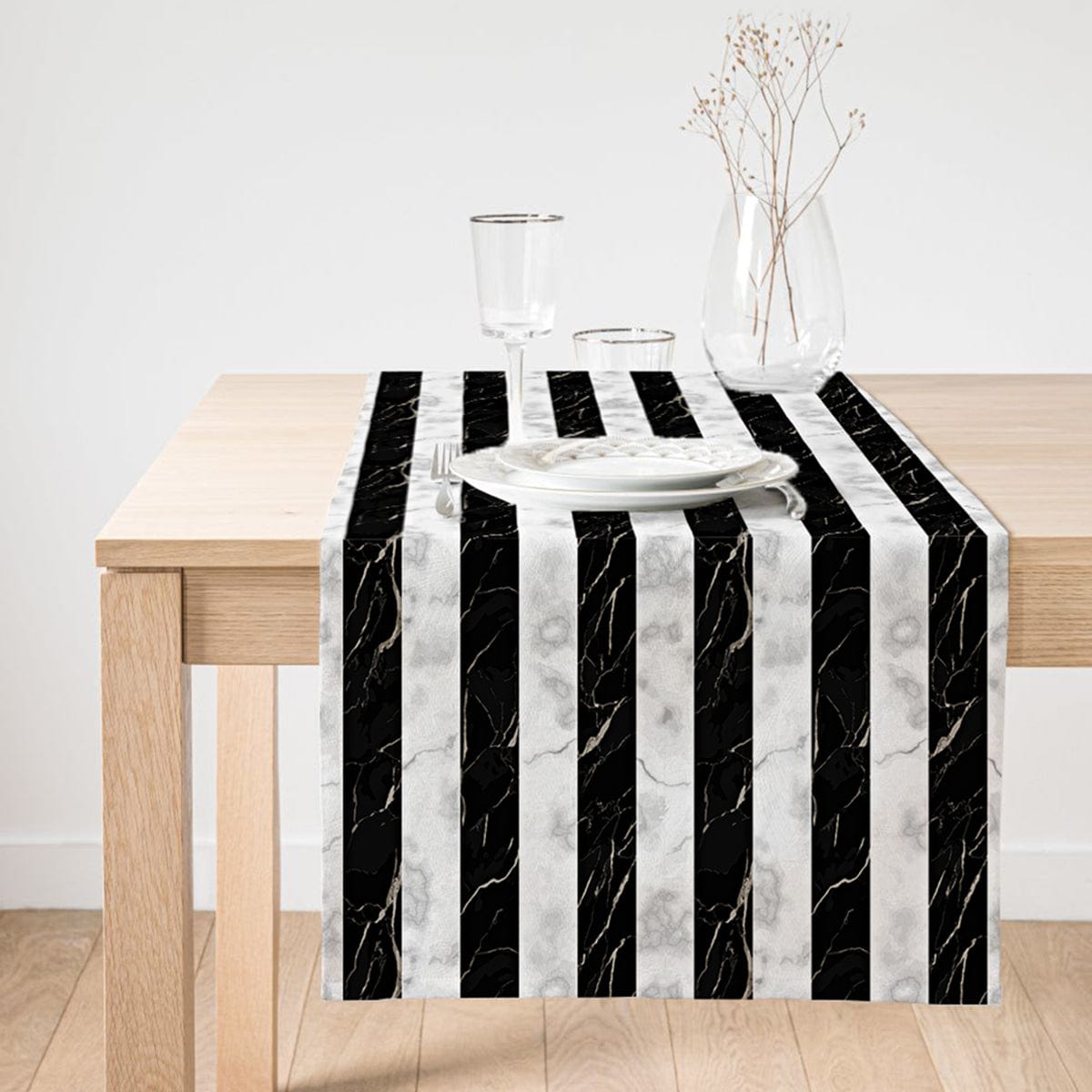 Mermer Zeminli Siyah Çizgili Dijital Baskılı Özel Tasarım Süet Runner