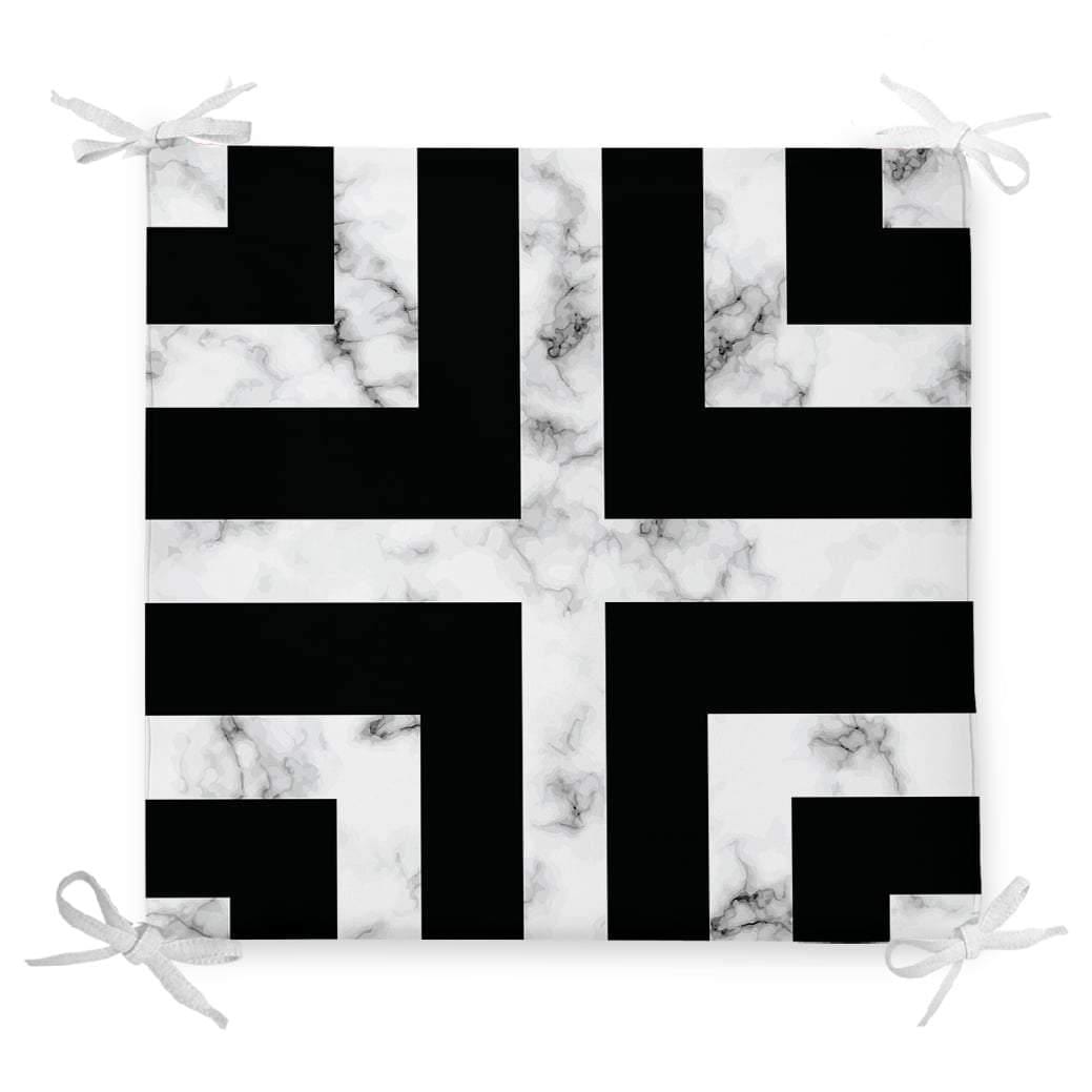Mermer Zeminli Siyah Geometrik Desenli Modern Fermuarlı Sandalye Minderi