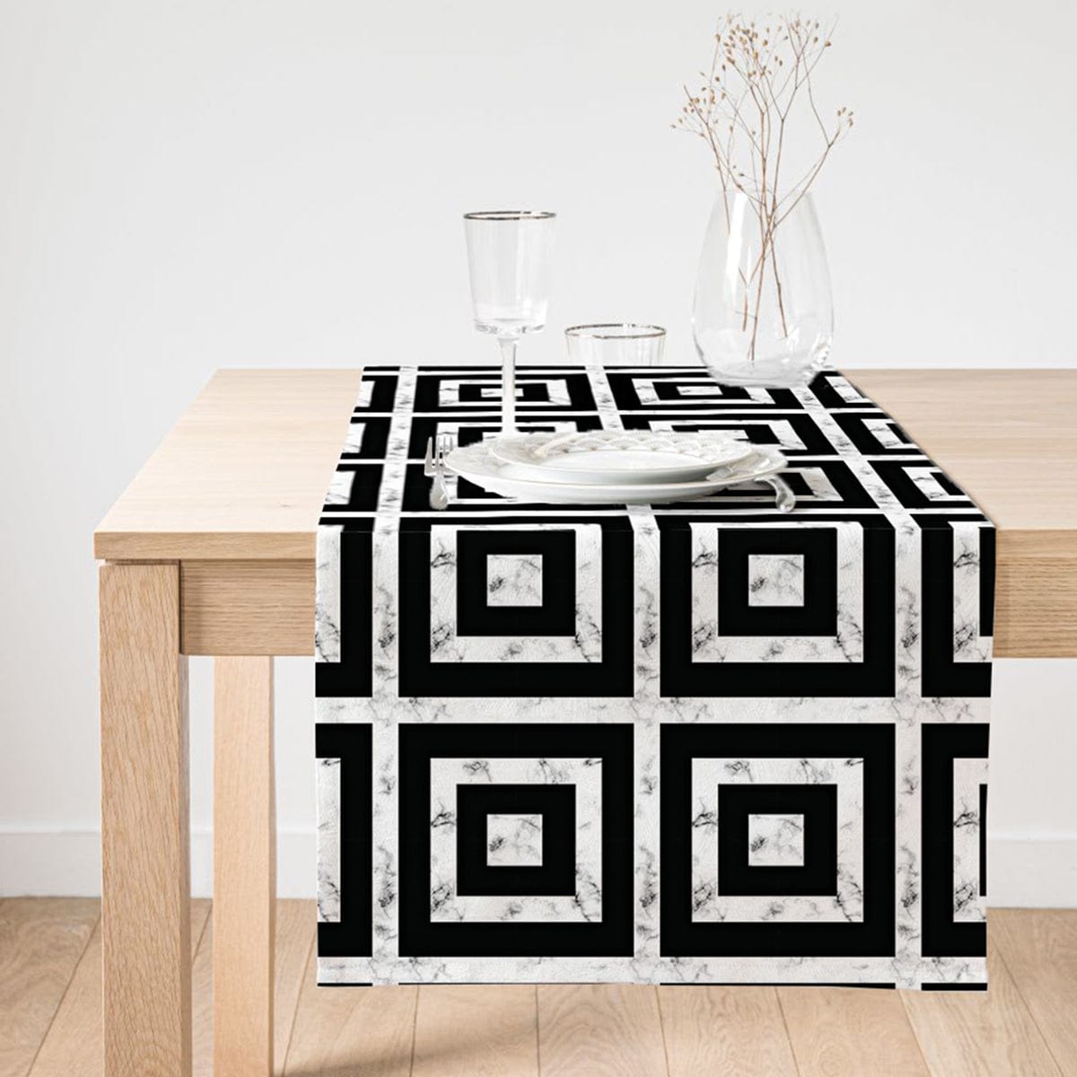 Mermer Zeminli Siyah Geometrik Desenli Modern Özel Tasarım Süet Runner