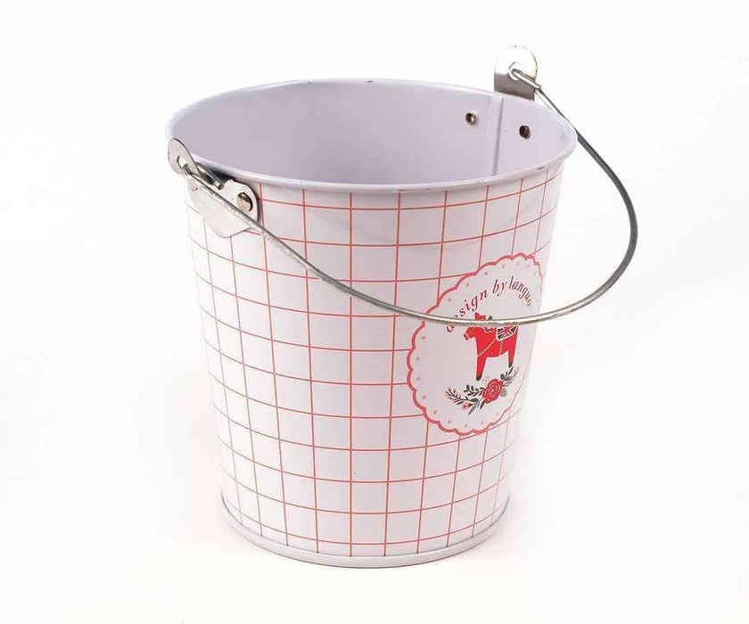 Metal Mini Kova Beyaz Kırmızı Kareli
