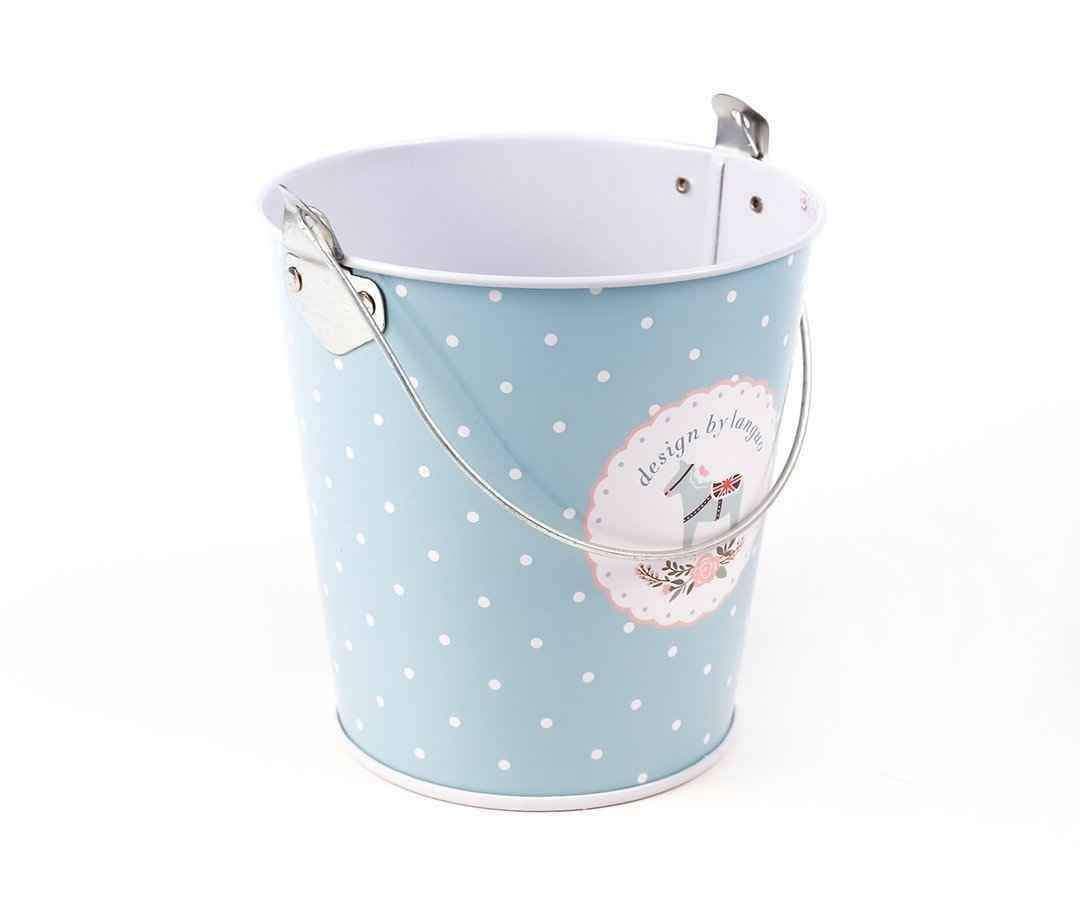 Metal Mini Kova Mavi Beyaz Puantiyeli