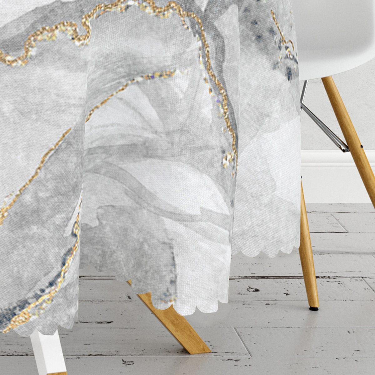 Modern Mermer Desenli Dijital Baskılı Leke Tutmaz Yuvarlak Masa Örtüsü