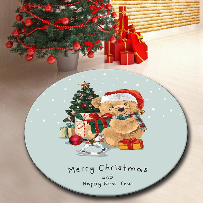 New Year Teddy Dijital Baskılı Yuvarlak Halı, Kaymaz Taban, Yıkanabilir