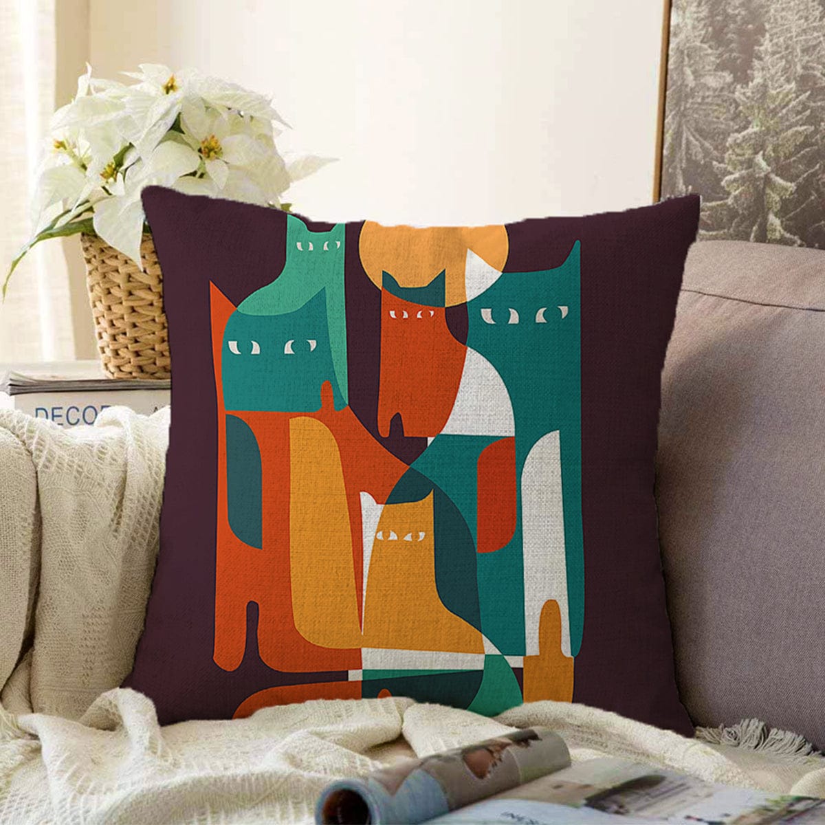 Çok Renkli Dijital Baskılı Modern Raşel Kadife Yastık Kırlent Kılıfı