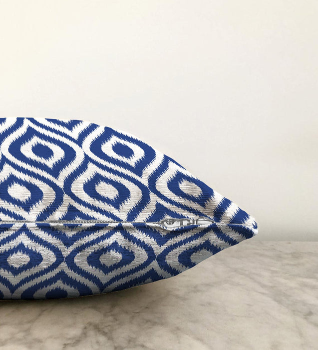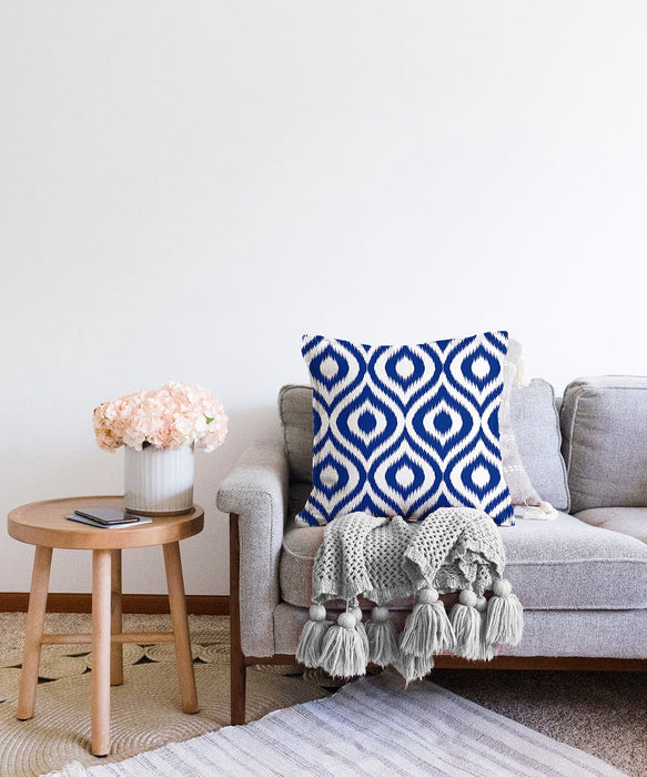 Özel Tasarım Lacivert İkat Desenli Dijital Baskılı Raşel Kadife Yastık Kırlent Kılıfı