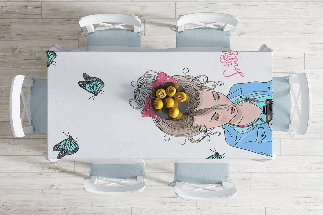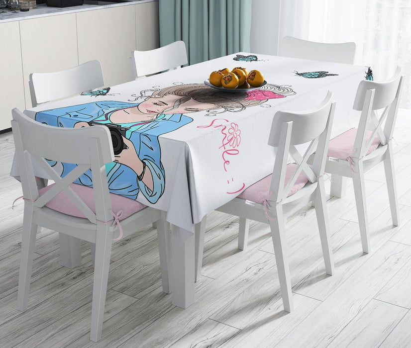 Özel Tasarım Smile Take Up Desenli Dekoratif Leke Tutmaz Masa Örtüsü
