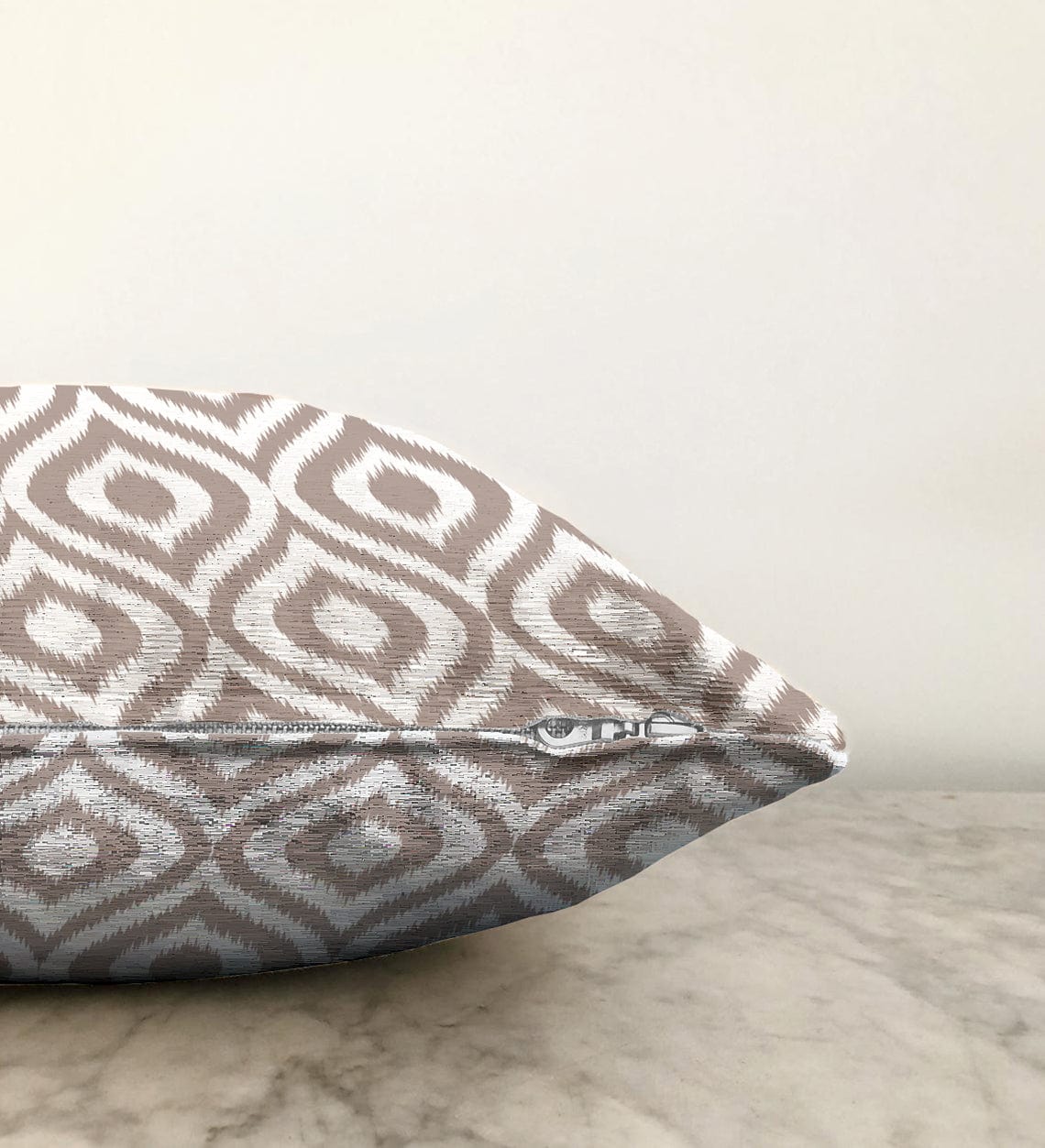 Özel Tasarım Vizon İkat Desenli Dijital Baskılı Raşel Kadife Yastık Kırlent Kılıfı