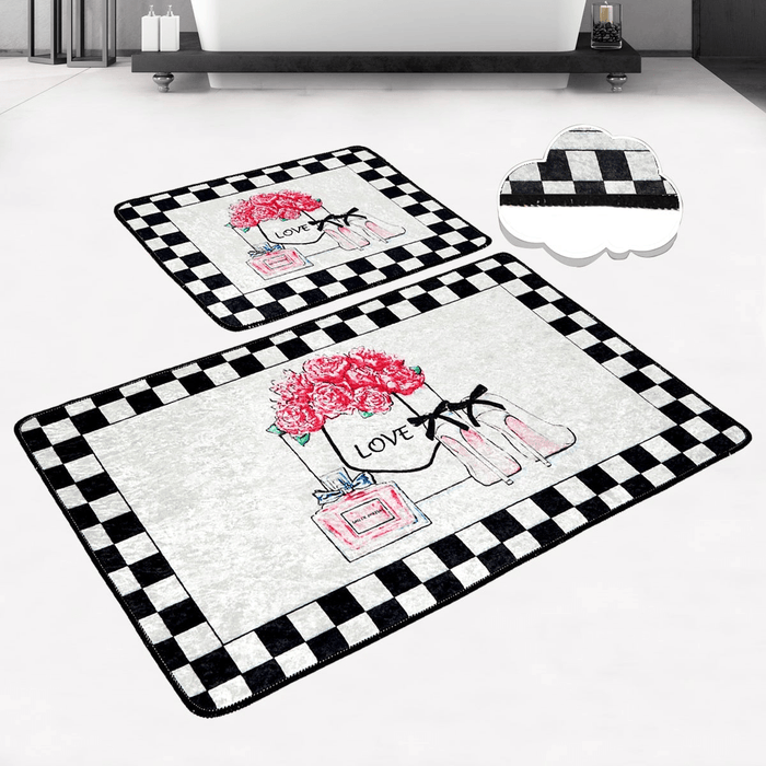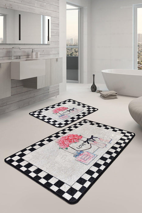 Parfume Dijital Baskılı 2li Set Banyo Paspas ve Halısı, Kaymaz Taban, Yıkanabilir