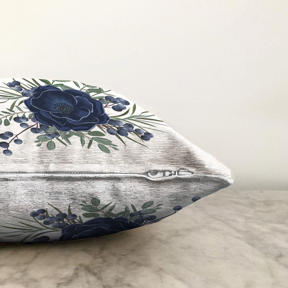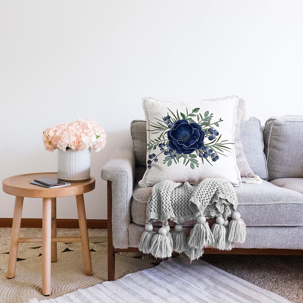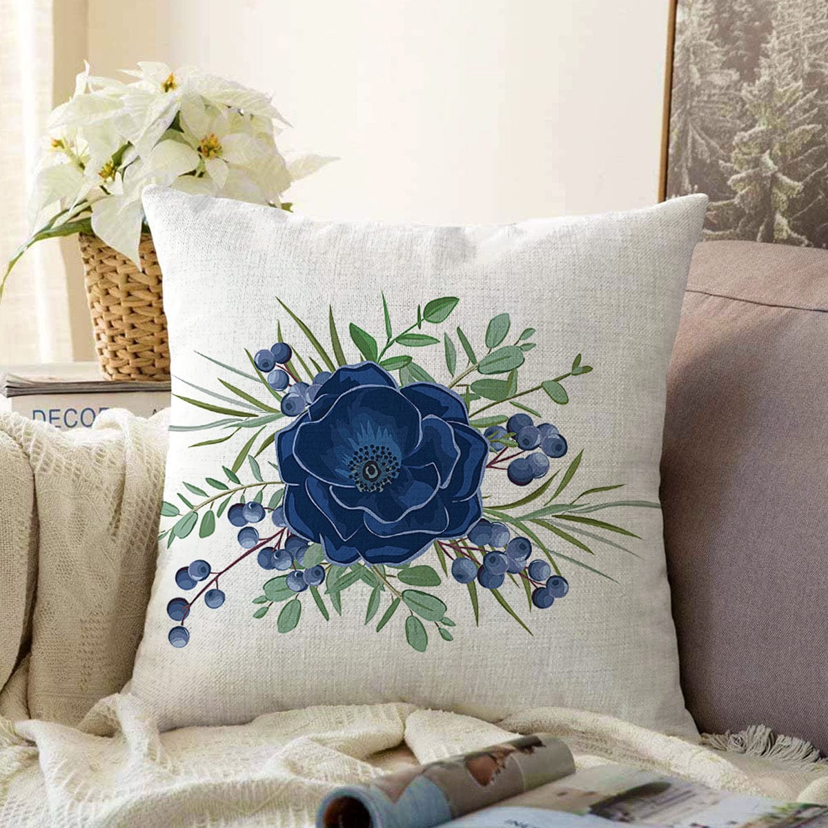 Pastel Mavi Gül Desenli Dijital Baskılı Modern Raşel Kadife Yastık Kırlent Kılıfı