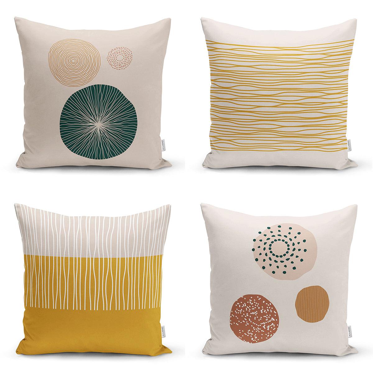 Pastel Renkli Çizgili Dijital Baskılı Modern 4lü Kırlent Kılıfı Seti
